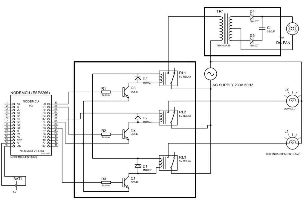OFF as per the users request to the Google Assistant. The microcontroller used is NodeMCU (ESP8266)